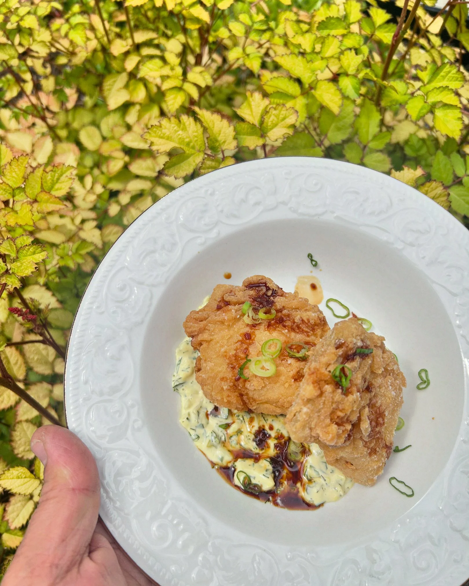 chicories, lettuces, panko breadcrumbs, shottsuru-yuzu dressing